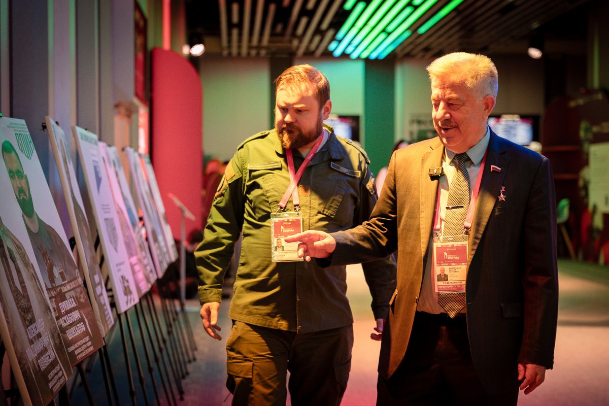 Председатель Правления Центра «ВОИН», депутат Госдумы России, Герой ЛНР Виктор Водолацкий осмотрел мобильную выставку «Зал ВОИНской славы», которая экспонируется в рамках Всероссийского патриотического форума, он проходит с 7 по 10 декабря в Национальном центре «Россия».